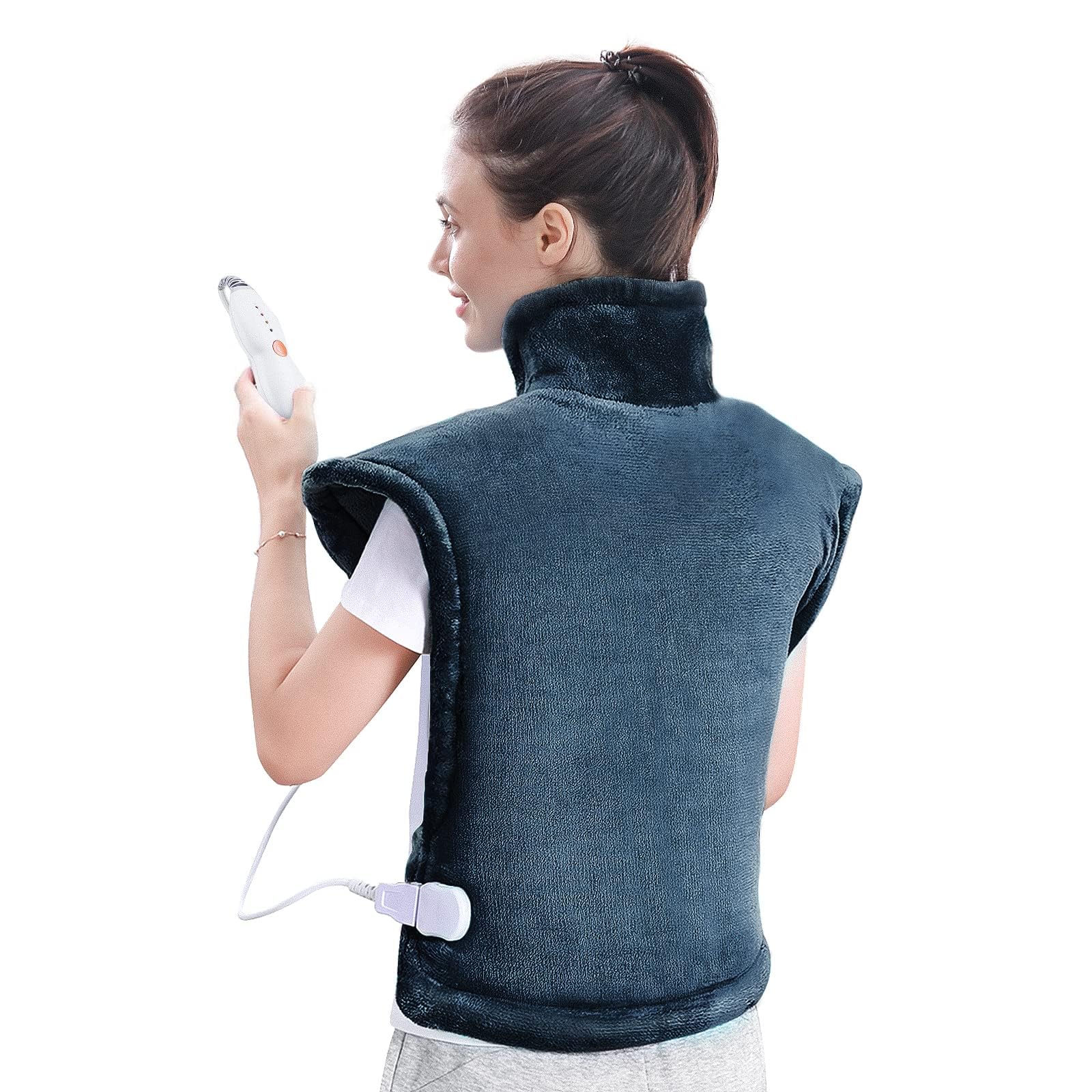 Almohadilla eléctrica para espalda, hombros, cuello, 60 x 85 cm con 4 niveles de temperatura, almohadilla eléctrica con apagado automático y protección contra sobrecalentamiento (Azul)