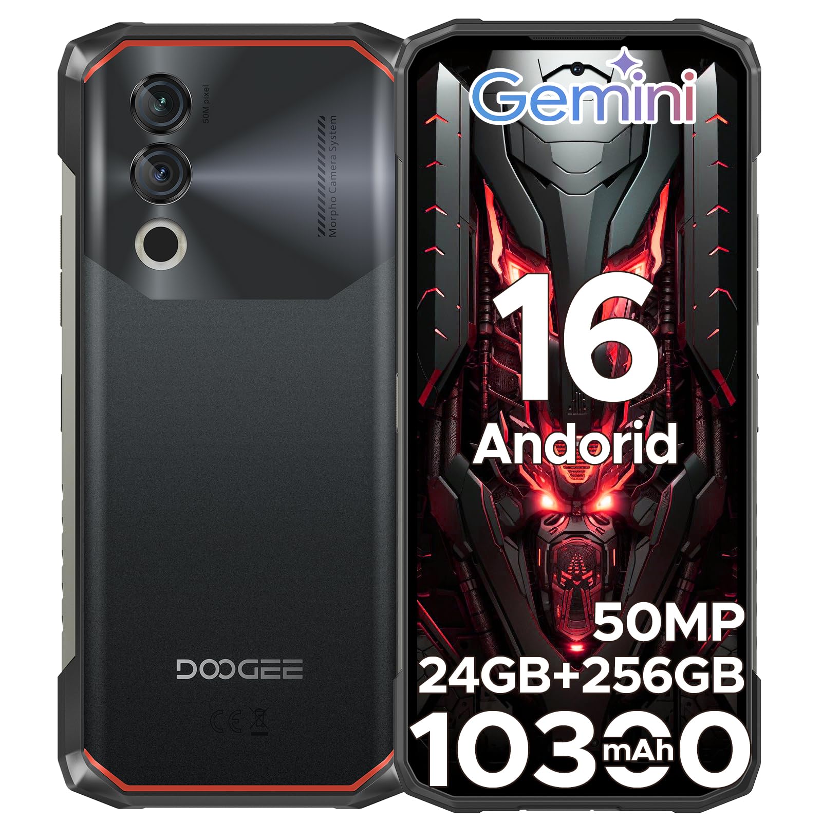 DOOGEE S Cyber Móvil Todoterreno (2025) Teléfono Irrompible Android 14, 10800mAh, Móvil Resistente 20GB+256GB/ 6.58” FHD, 50MP+16MP Cámara Móvil Rugerizado 4G Dual SIM/Huella Dactilar/Face ID/NFC/OTG