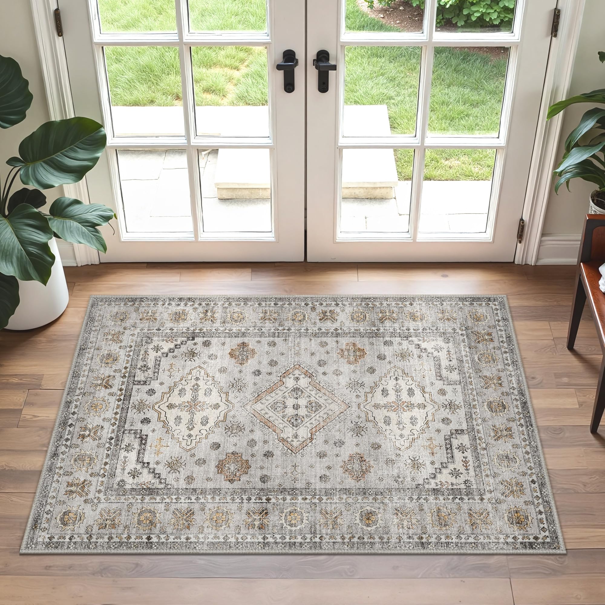 GENIMO - Tappeto Vintage 60x90cm - Antiscivolo, Lavabile, Con Pelo Corto - Per Corridoio, Ingresso, Camera - Beige Grigio