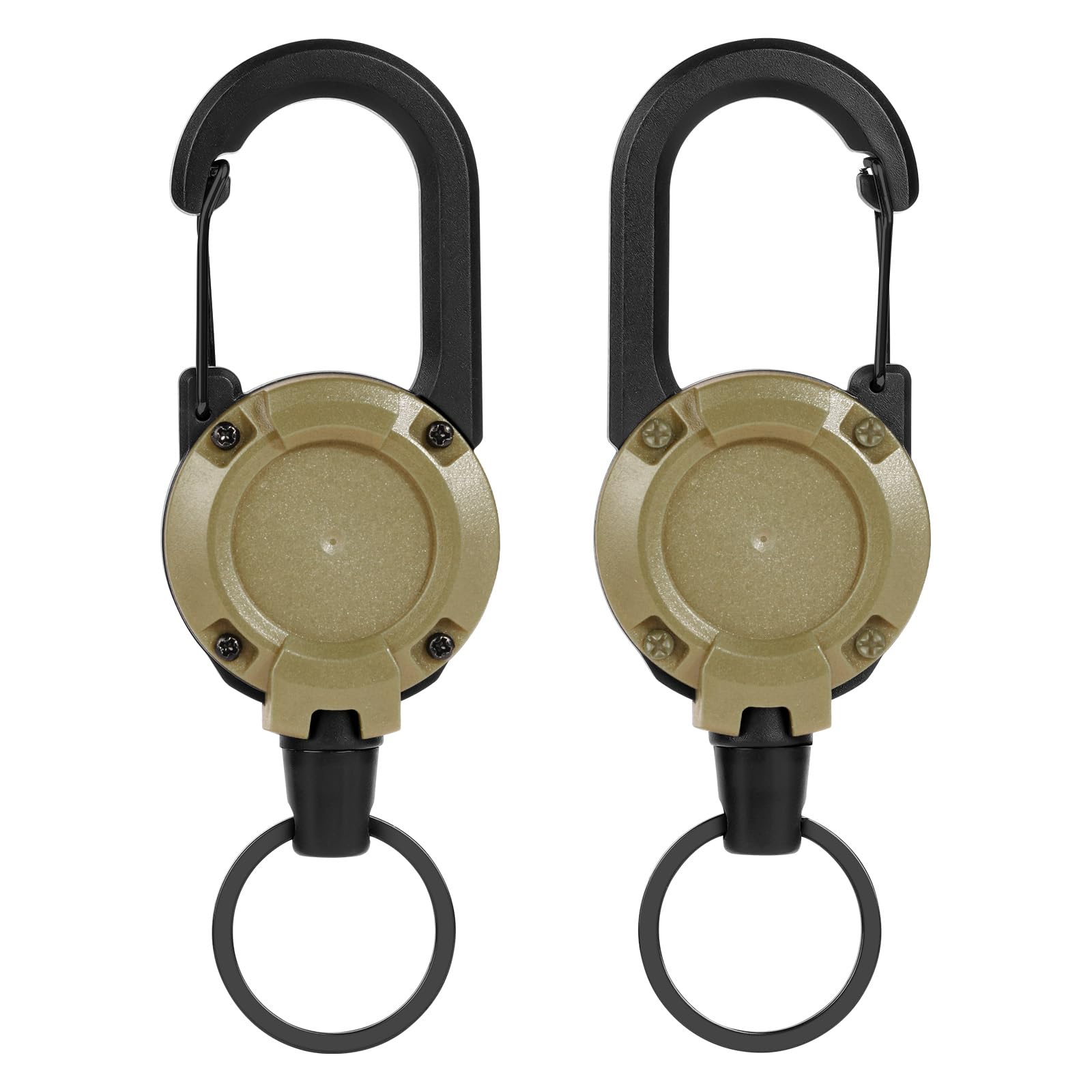 Vicloon Wytrzymały zwijany brelok, 2 szt., na identyfikator, z kołowrotkiem, wytrzymałe klipsy, khaki